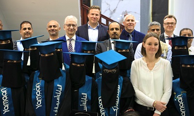 كرّم محافظ حضرموت الأستاذ مبخوت مبارك بن ماضي، ومعه سفير جمهورية ألمانيا الأتحادية لدى اليمن توماس شنايدر، اليوم، أوائل الخريجات في “مشروع تأهيل قابلات تقنيات”، الذي استهدف 67 قابلة من محافظات حضرموت وشبوة والمهرة، واستمر الدراسة فيه لمدة ثلاث سنوات في المعاهد الصحية بالمحافظات المستهدفة للحصول على شهادة الدبلوم، بتمويل من بنك التنمية الألماني ومؤسسة يمان للتنمية الصحية والاجتماعية.